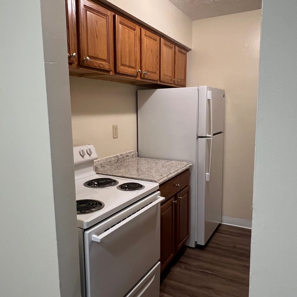 Kitchen with Electric Range and Refrigerator